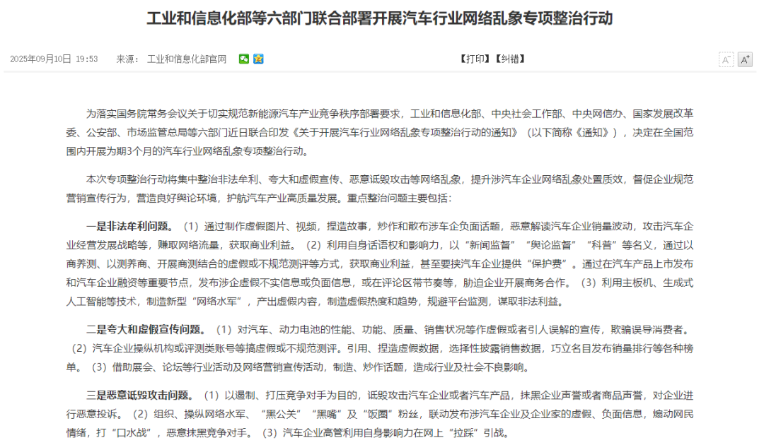 2025年9月,工业和信息化部等六部门启动为期三个月的专项整治,重点打击夸大、虚假宣传行为。其中包括引用、捏造虚假数据,选择性披露销售数据,巧立名目发布销量排行等各种榜单。不少专家呼吁建立透明机制,如比对订单与车辆上险量、完税数据,以核实真实交付情况,并对数据严重偏差的企业予以惩戒。
