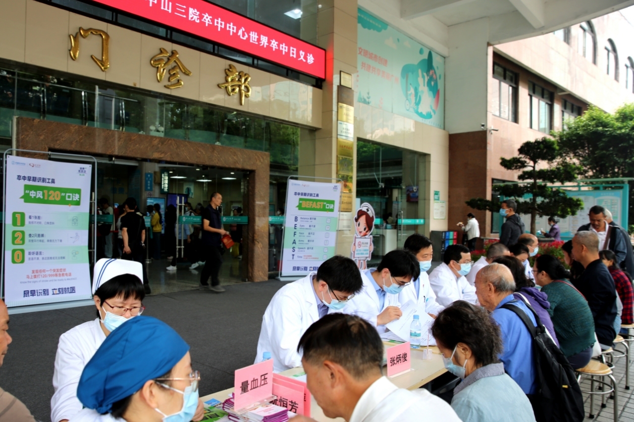 2025年10月29是第20个“世界卒中日”,主题为“尽早识别,立刻就医”,强化“时间就是生命”的科学共识。10月27日,中山三院天河院区神经内科联合岭南、粤东、肇庆三院区举办了大型科普讲座及义诊活动,就强化症状识别、强调紧急就医观念、普及全流程科学防治等相关内容开展,提升公众对卒中的认知与防控意识,让更多患者因“尽早识别,立刻就医”而获得生命与健康的希望。活动现场还免费为广大居民测量血压、测血糖、发放健康教育宣传页。