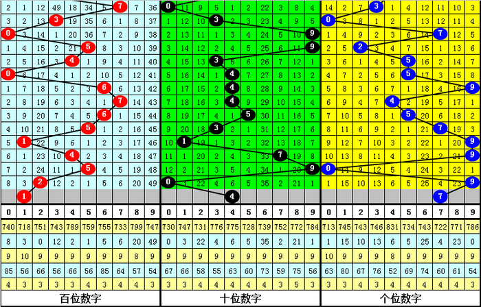 个位:近期质合号码出现次数基本持平,合数号码连续开出4期之后,本期不看好合数再出,注意质数号码回补;另外,该位0路和1路号码在最近17期奖号中走势较热,2路号码表现相对较冷,本期该位放弃2路号码,参考号码7。