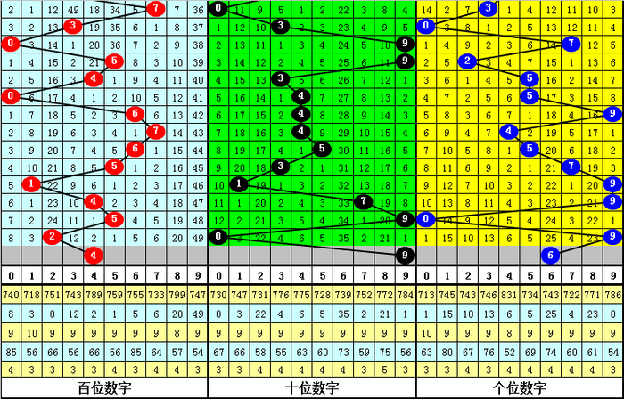 目前百位最冷号码为9,当前遗漏49期,该号码历史最大遗漏为54期,本期百位号码9没有解冻的迹象,继续放弃。