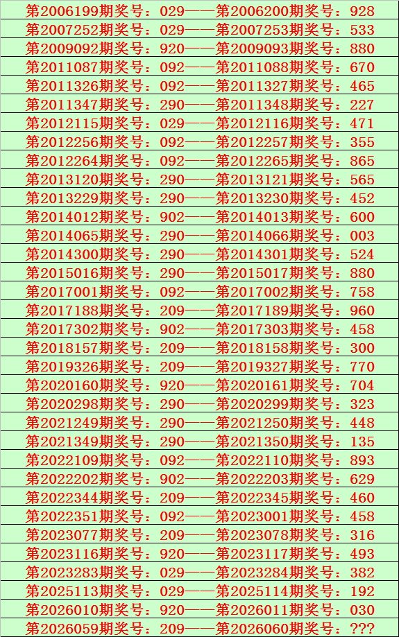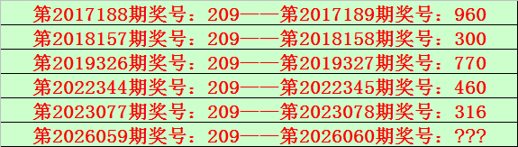 排列三第2026059期开出奖号209,该号码直选类型历史上出现了6次,前5次开出之后期下期奖号为:960、300、770、460、316,见下表: