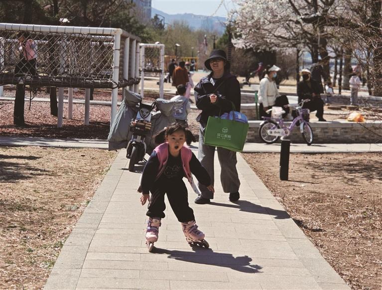 春风送暖,万物复苏。随着气温回升,市区迎水坝公园及武烈河畔春意渐浓,处处生机盎然,不少市民带着孩子前来游玩踏青,尽享春日美好。