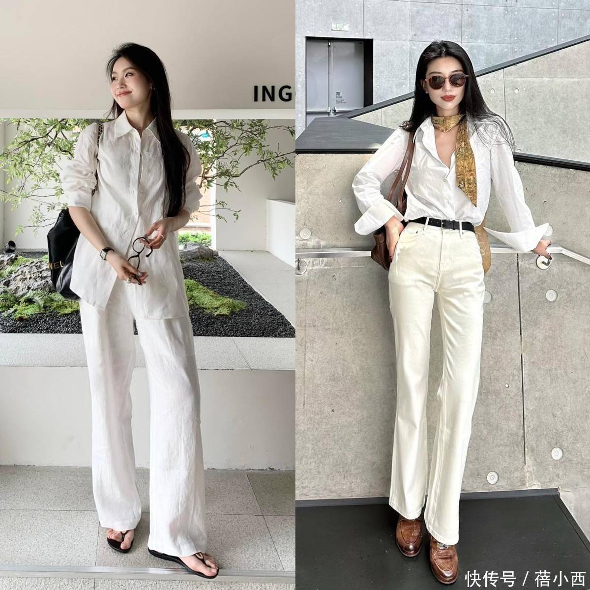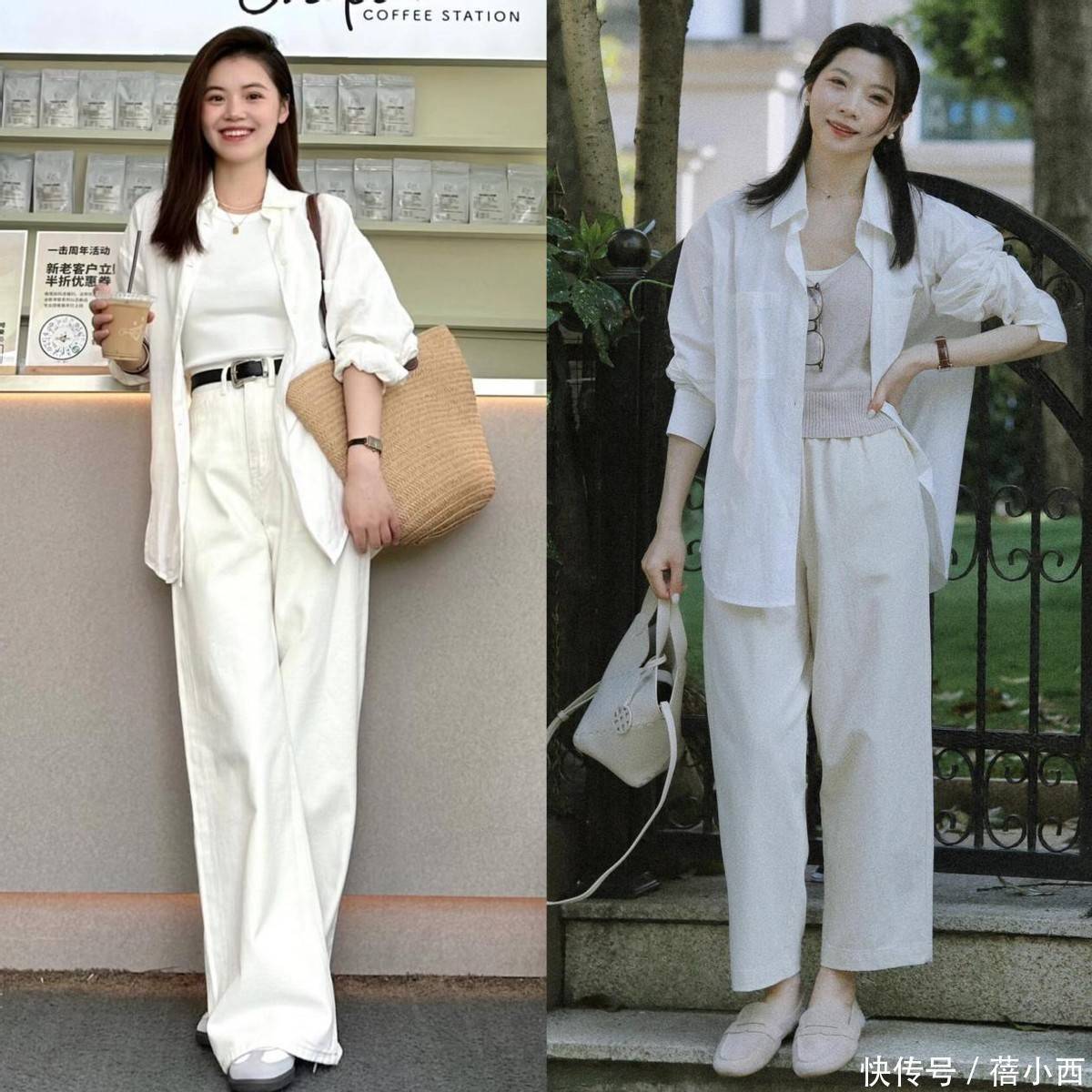 2,白衬衫搭配小白裤