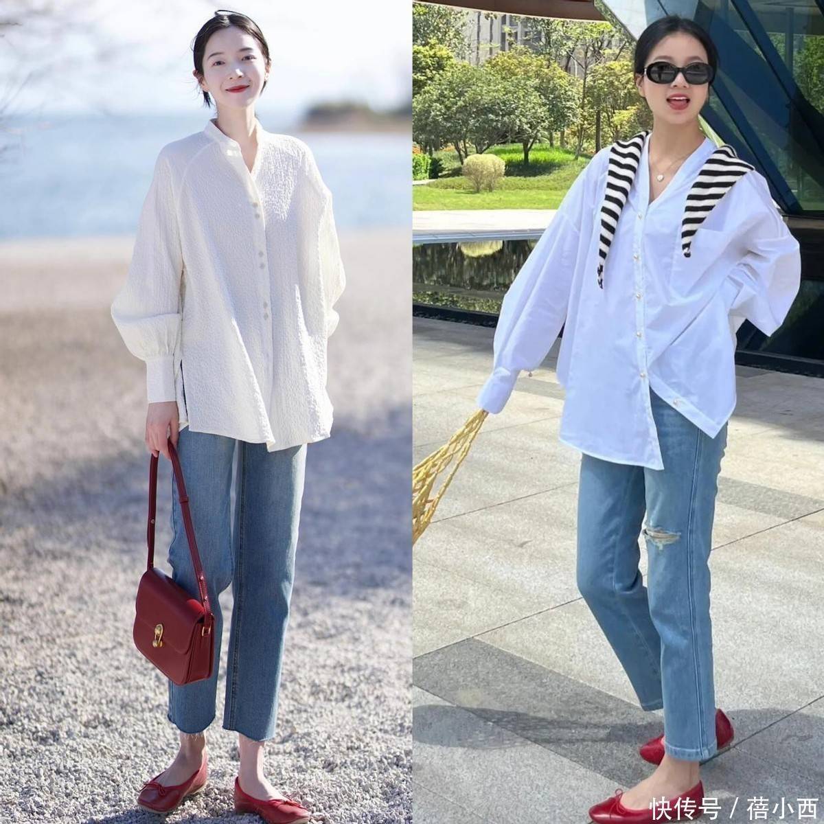 1,白衬衫搭配牛仔裤
