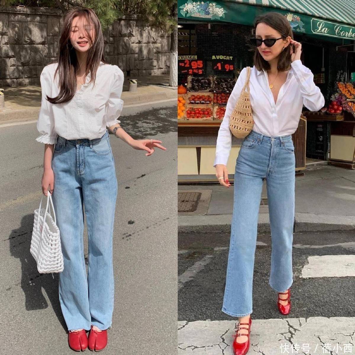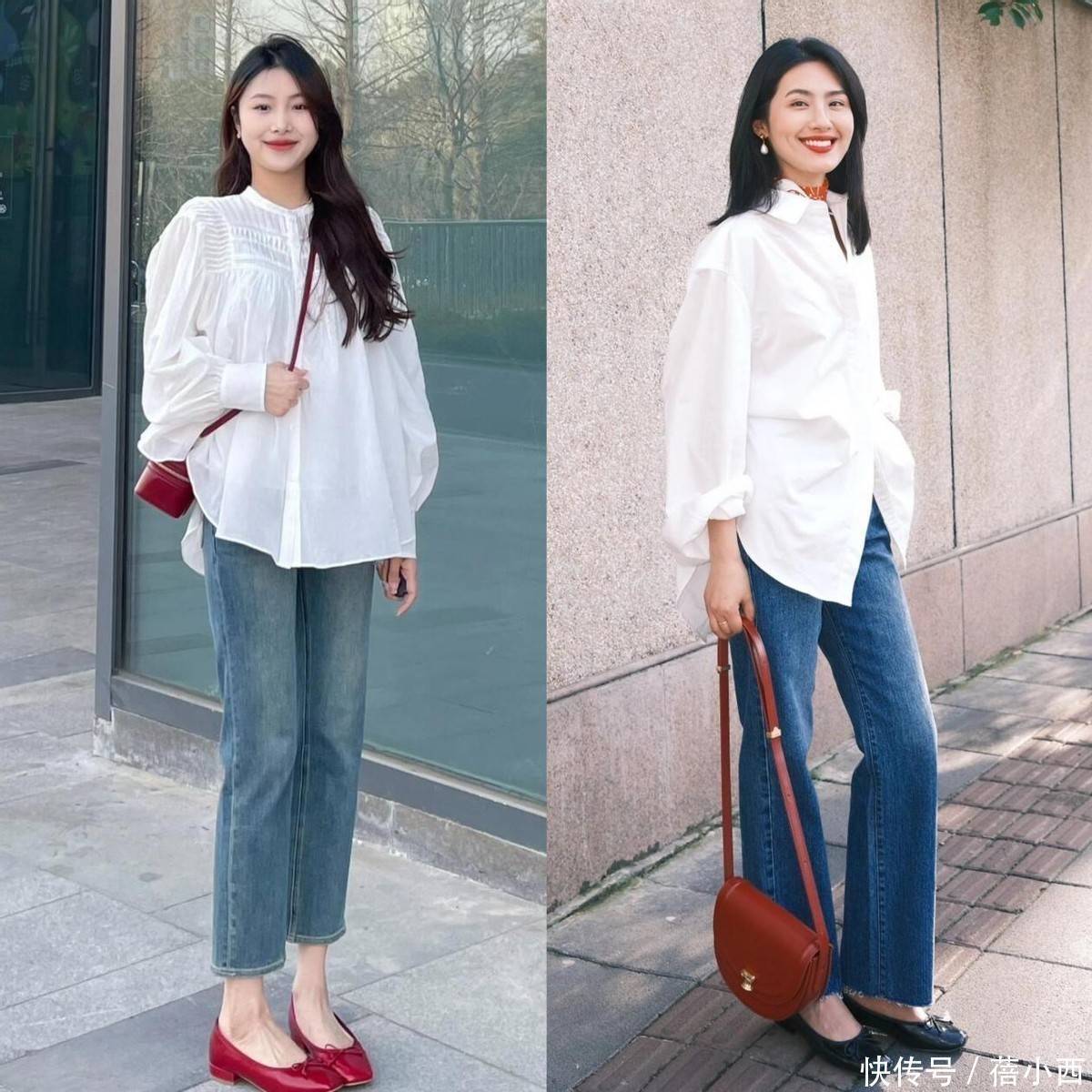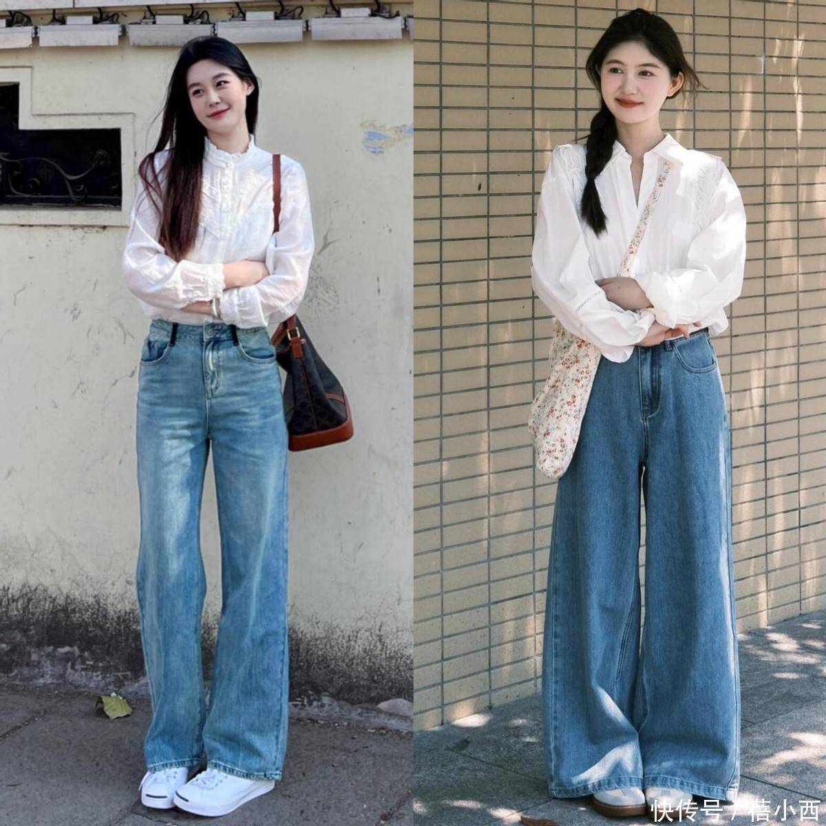 牛仔直筒裤与白衬衫的组合,是时尚圈的经典搭配,这么多年从未被淘汰,今年更是重回潮流 C 位,直筒裤的版型利落流畅,不紧绷、不拖沓,能完美修饰腿型,无论是腿粗、腿不直还是胯宽,都能轻松藏住小瑕疵,搭配白衬衫和低跟单鞋,自带轻盈感,对各种身材都格外友好。