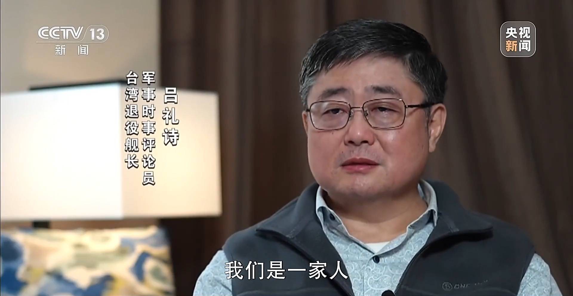台湾退役舰长、军事时事评论员 吕礼诗:这其实是一个国家的气度,而且也是告诉了台湾同胞,我们是一家人。所以我们台湾人不妨仔细想一想,我们究竟想要追求的是什么。台湾当旁观者太久了,既然我们一家亲就更应该互补,当我们形成互补的时候,也就能够真正实现中华民族伟大复兴,那我们就不再是旁观者,是参与者。